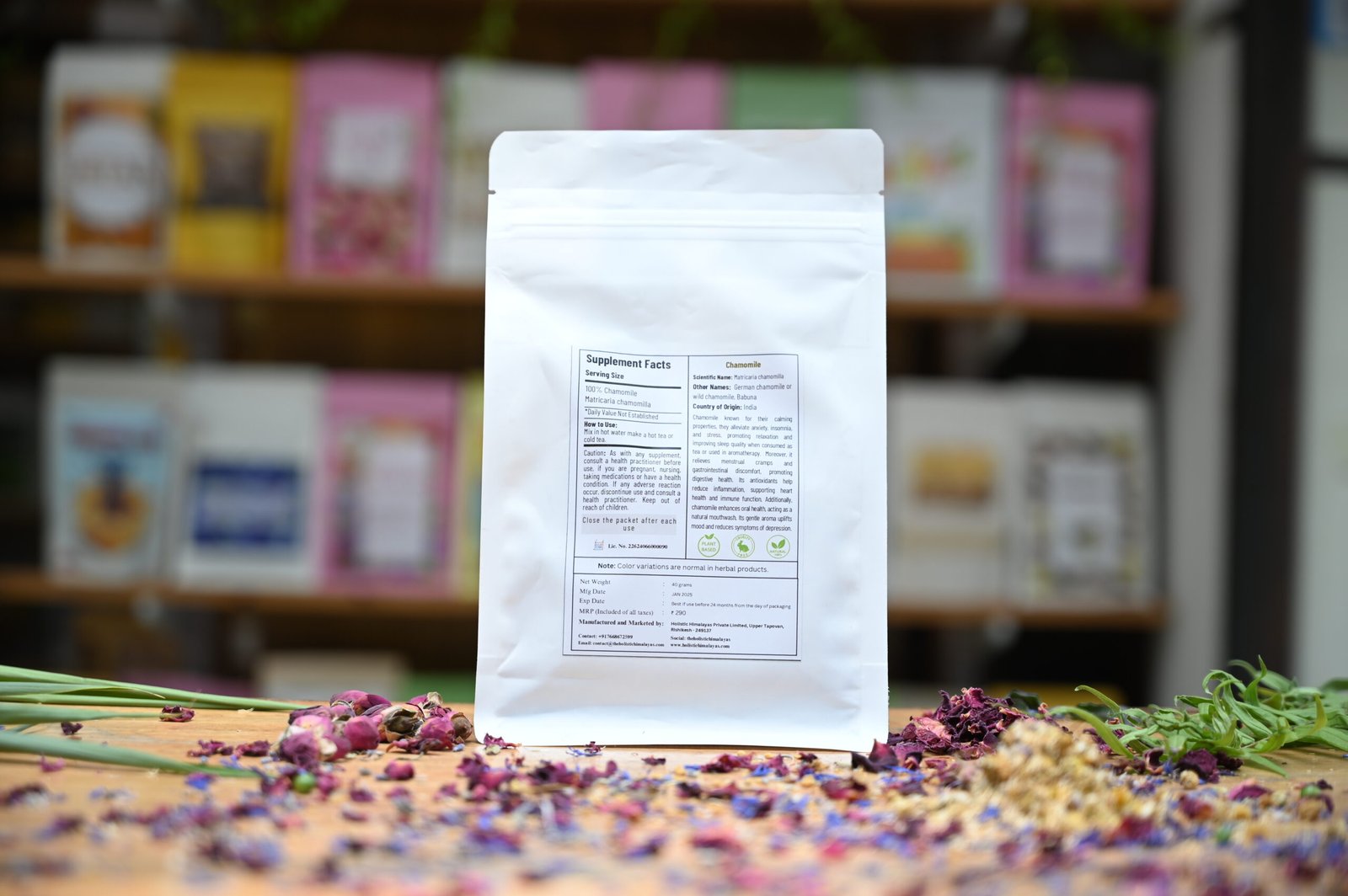 - Steep 1–2 teaspoons of Chamomile flowers or powder in hot water for 5–7 minutes to make a calming tea.
