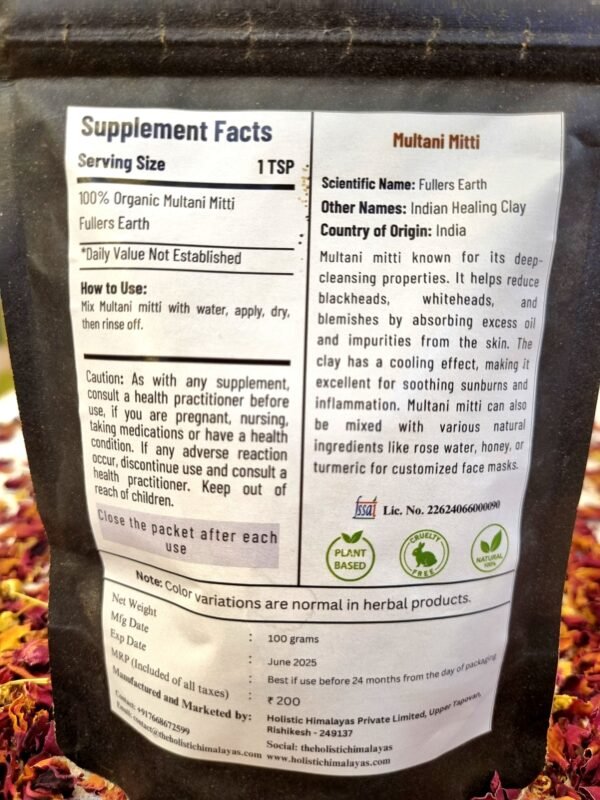Sourced from mineral-rich Himalayan regions, our Multani Mitti (Fuller’s Earth) is a time-tested natural clay known for its deep cleansing and skin-purifying properties. Carefully processed and finely powdered, this ancient beauty secret has been used in Ayurveda for centuries to promote healthy, radiant skin.