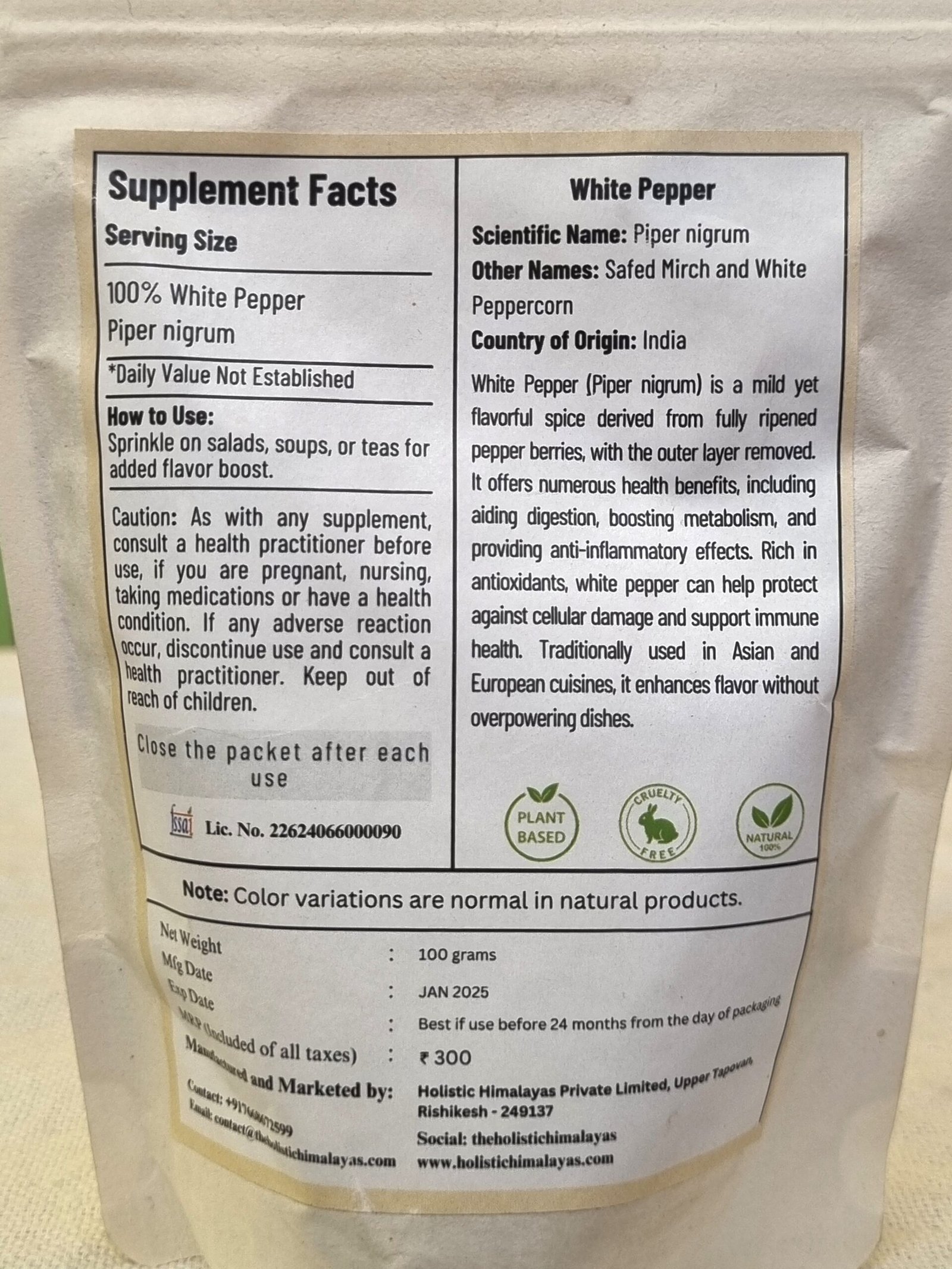 Holistic Himalaya White Pepper adds a subtle spice without overpowering color, making it perfect for: